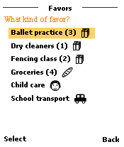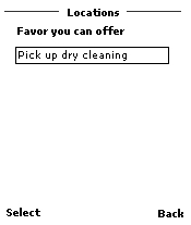 When a mother first starts using Favor Link, the first step is to bookmark the locations that she wants the system to remember. Once you recorded a location, the system will know every time you are there and will be able to broadcast this information to other members.