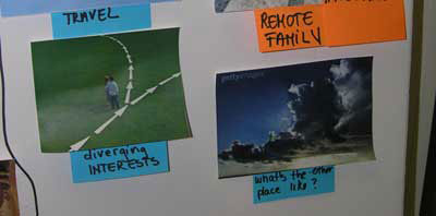 The Family Scrapbook was showcased at IDII’s year-end show, Exit. The final prototype for the Family Scrapbook consisted of a standalone client application, created in Macromedia Director MX. Instances of the same application were running on several Apple computers, talking to each other with Macromedia's MultiUserXtra. Instead of exchanging information like image data with an Internet server, all applications were talking to an identical set of local images and only exchange names of images. This is how they would update each other about which files are uploaded and which are not yet.
