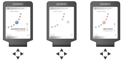 In the phone interface, we allowed small details that would support the eccentric behaviors of rich people within their social circle. The social controller allows you to rate your contacts, and then broadcast this information to other contacts. This way, social relations can be strengthen or destroyed. Social controller users can also broadcast their “status“ as a way to show off about their new achievements.